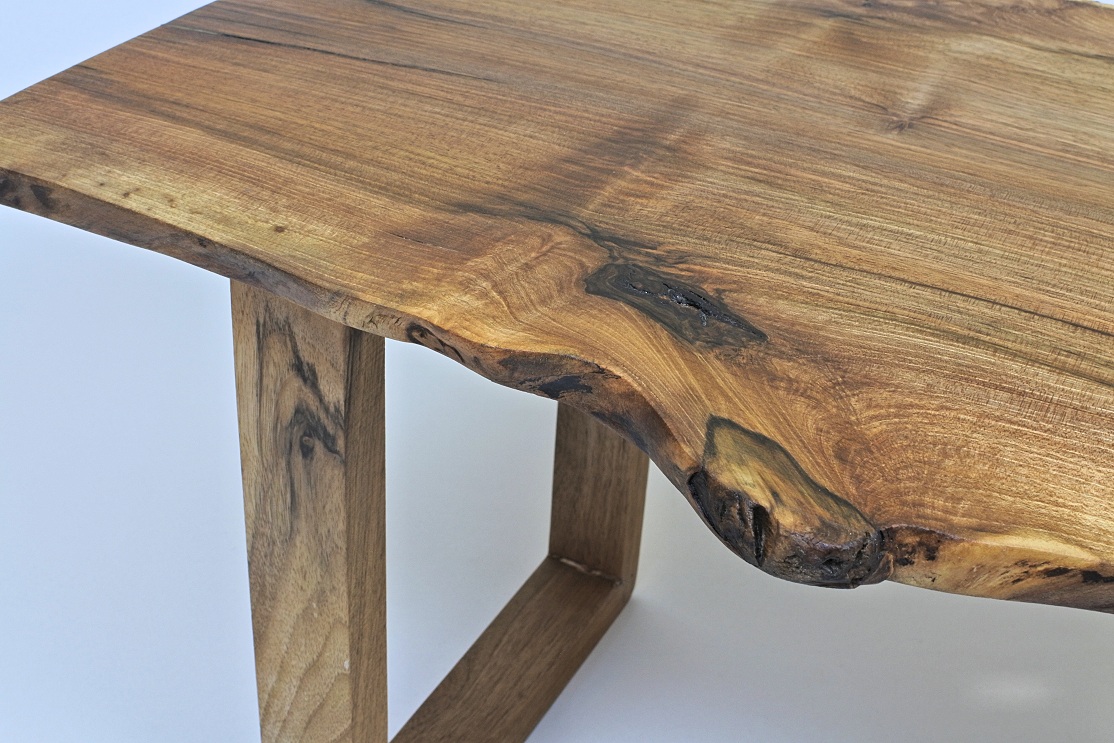 Blatul este realizat din doua placi de lemn „pereche”, cu o muchie de forma naturala.