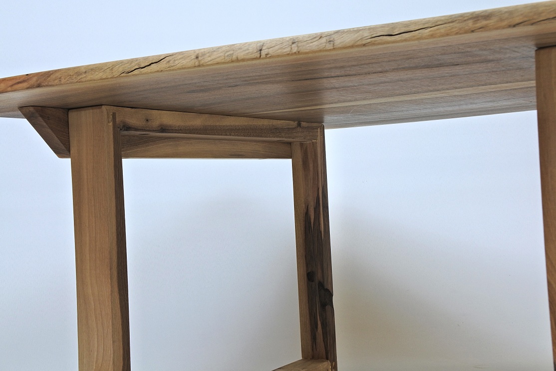 Picioarele sunt detasabile, realizate din lemn de nuc si finisate in acelasi mod cu blatul mesei. Prinderea picioarelor de blat, se face prin suruburi si piese incastrate.